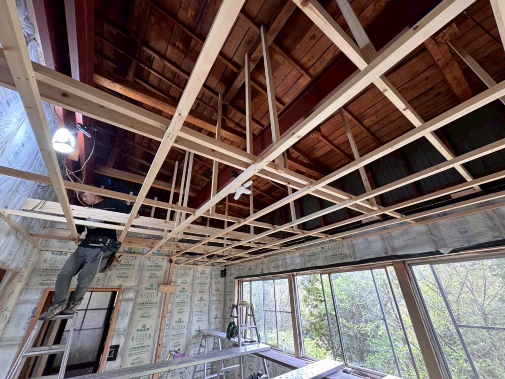 次に必要なのは、カフェテラスの増設とコワーキングスペースの断熱工事。人が集まり、語り、働き、くつろげる拠点にするための大切な工事です。